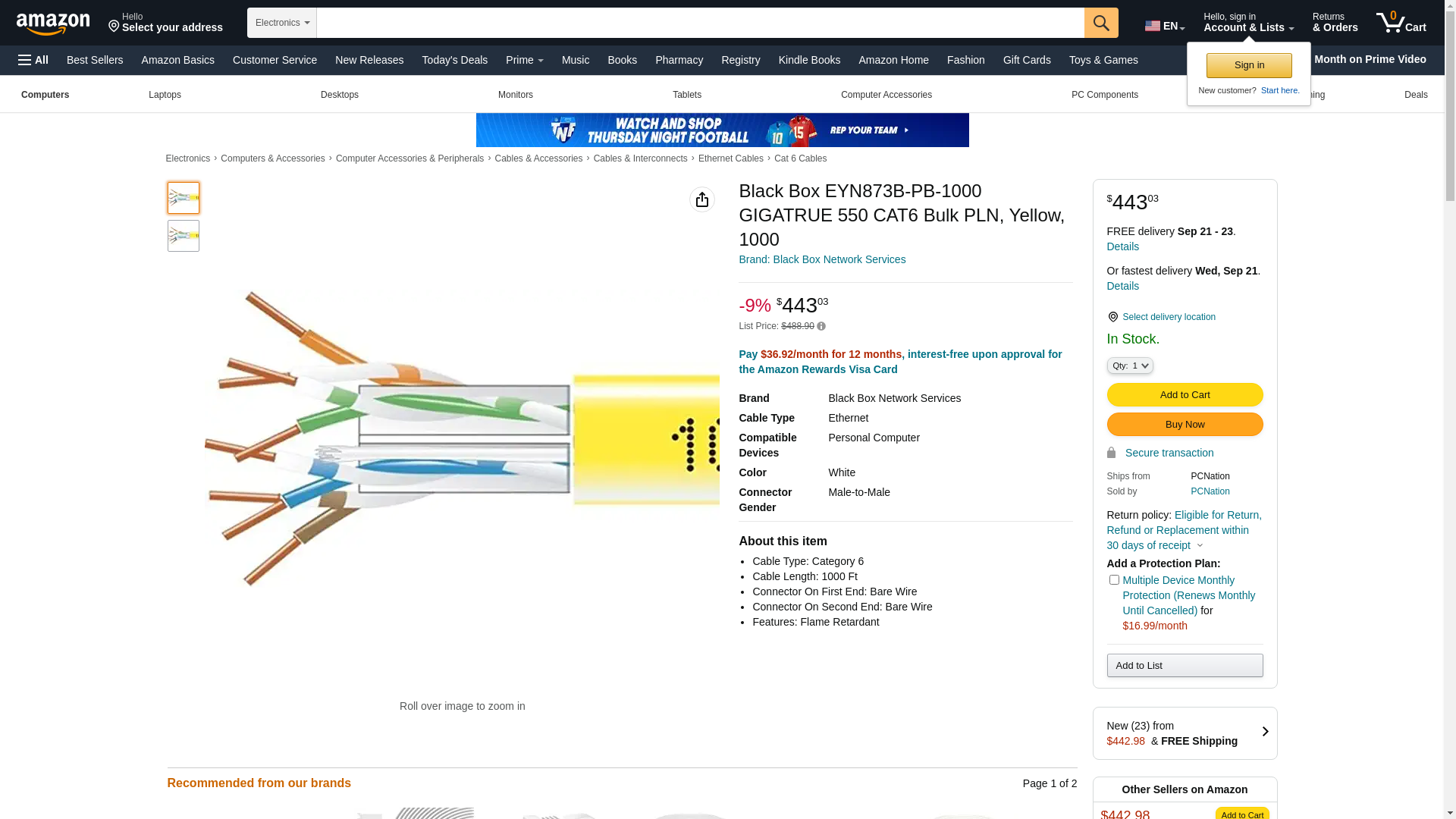 <p><strong>BlackBox, EYN873B-PB-1000, GigaTrue CAT6 550-MHz Plenum Jacketed Solid Bulk Cable (1000-ft.) - Yellow</strong></p><p>GigaTrue CAT6 550-MHz Solid Bulk Cable - Plenum, Yellow, 1000-ft. </p><p><strong>Quick Facts</strong></p><ul><li>This cable is part of our ETL-Verfied GigaTrue CAT6 channel solution. Cable is tested four times a year.</li><li>Genuine! Thick, 23 AWG solid-copper conductors are ideal for top performance in long runs.</li><li>Safe! Meets fire codes and specifications so you can confidently use it in all your plenum runs.</li><li>Guaranteed for life!</li></ul><p><strong>Further Details</strong></p><ul><li>Get blazing speed. This cable is tested to 550 MHz.</li><li>Guaranteed to meet or exceed ANSI/TIA/EIA-568-C.2 Category 6 and ISO/IEC 11801 Class E requirements.</li><li>Ideal for Gigabit Ethernet, VoIP, digital video and audio, and other high-performance networking applications.</li><li>Cross-member design for strength and performance.</li><li>Features flame-retardant PVC, low-smoke jacket and FEP insulation.</li><li>Cable is marked in two-foot increments so you always know how much you have left in the pull-box.</li><li>UL 444 Listed.</li></ul><p>This cable is the real deal: genuine and guaranteed for life. You can be confident that you'll get top network and safety performance in every run. This cable is part of our ETL Verified solution and is tested four times a year. It also meets all safety codes and regulations and is UL Listed. For more information on counterfeit cable, see Resources below.</p>