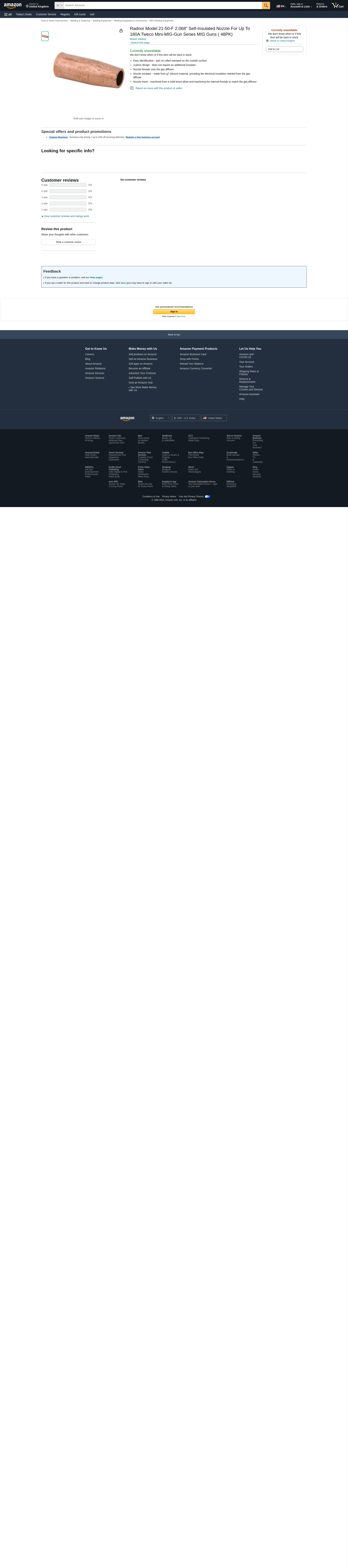 Radnor Model 21-50-F 2.068" Self-Insulated Nozzle For Up To 180A Tweco Mini-MIG-Gun Series MIG Guns ( 36PK)