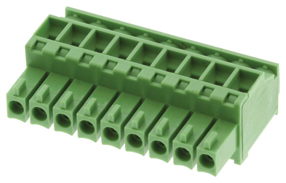 | Feature | <b>Price For:</b> Pack of 10<b>Order Unit:</b> Each\xa01 <b>Approvals / Standards:</b>: - <b>Conductor Area CSA:</b>: 1.5 <b>Connector Type:</b>: Terminal Block, Pluggable <b>Contact Material:</b>: Phosphor Bronze <b>No. of Positions:</b>: 9 <b>Pitch Spacing:</b>: 3.5 <b>Rated Current:</b>: 8 <b>Rated Voltage:</b>: 300 <b>SVHC:</b>: No SVHC (17-Dec-2014) <b>Series:</b>: - <b>Wire Connection Method:</b>: Screw <b>Wire Size AWG Max:</b>: 16 <b>Wire Size AWG Min:</b>: 28 |