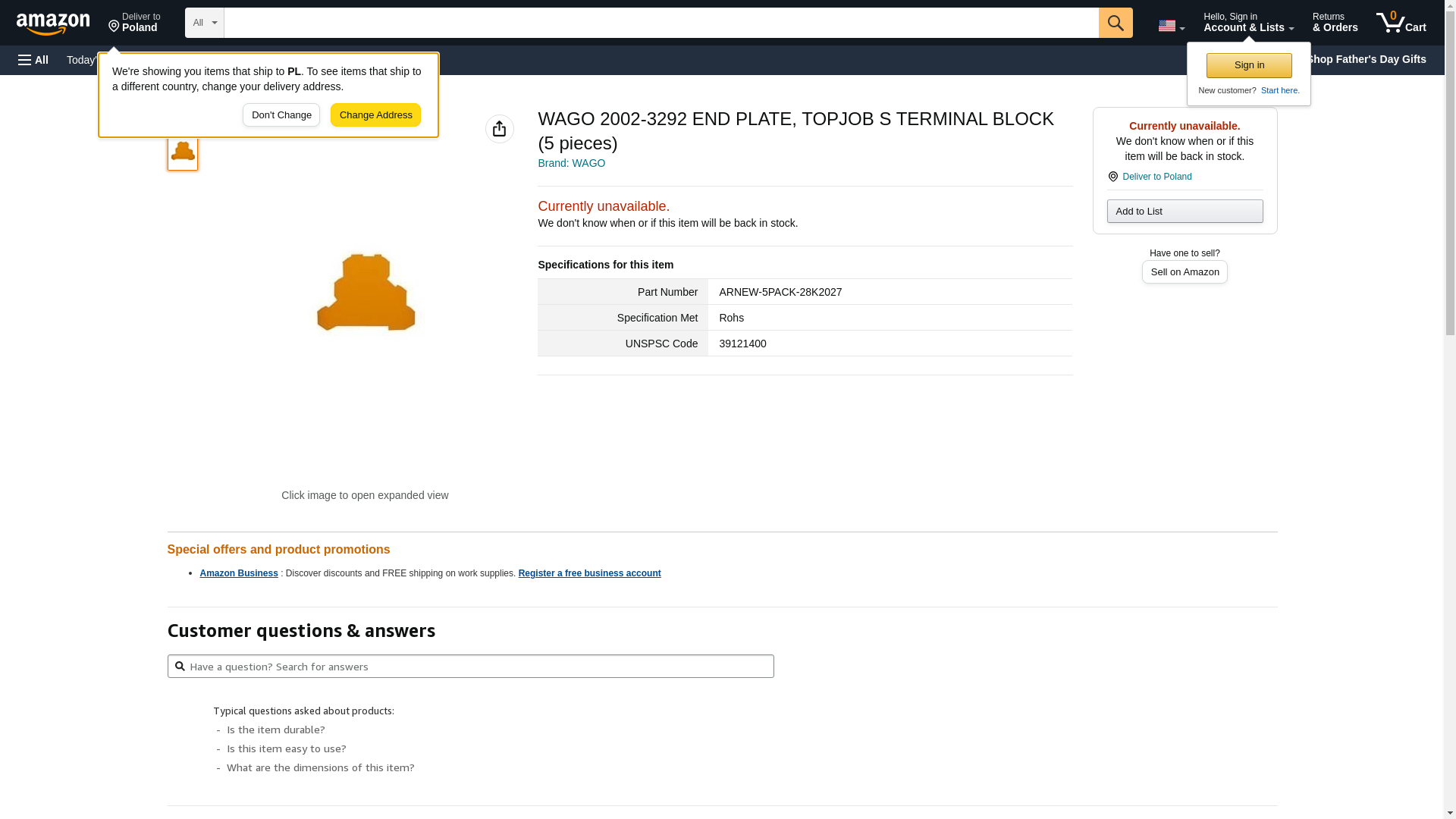 WAGO 2002-3292 END PLATE, TOPJOB S TERMINAL BLOCK (10 pieces)
