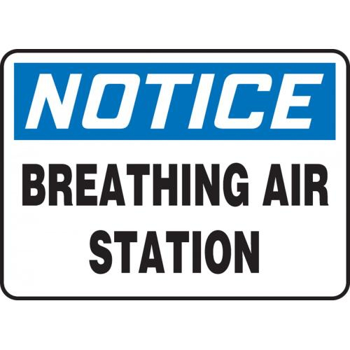 OSHA Safety Signs - NOTICE: Breathing Air Station, 10" x 14". Aluma-Lite has ultra-lightweight properties combined with high-strength, rugged engineering. This composite aluminum sign will be extremely durable, protected against abrasion, impacts, corrosion, chemicals and more. Withstands tough conditions both indoors and out. Aluma-Lite custom signs can resist impacts, flexing, and is tolerable to abuses such as vandalism. The core of the sign is also impervious to splash and wash-downs.<br><br>40% lighter than solid aluminum with the same durability, stiffness, and rigidity, Aluma-Lite signs are comprised of two sheets of aluminum permanently bonded, on both sides, to a lightweight thermoplastic center core. This combination makes for a superior strength-to-weight ratio composite material. Dura-Aluma-Lite can be used in a variety of industrial, warehouse, construction, and architectural settings.