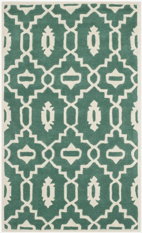 Safavieh CHT745T-3 3 Ft. x 5 Ft. Small Rectangle, Contemporary Chatham Teal And Ivory Hand Tufted Rug