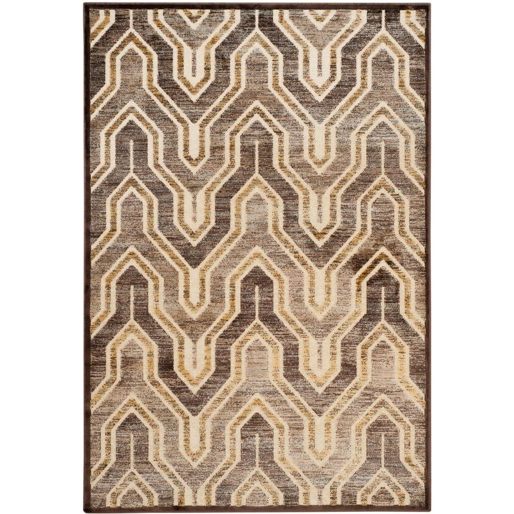SAFAVIEH Paradise Collection Area Rug - 5'3" x 7'6", Creme & Brown, Art Deco Viscose Design, Ideal for High Traffic Areas in Living Room, Bedroom (PAR352-1340)
