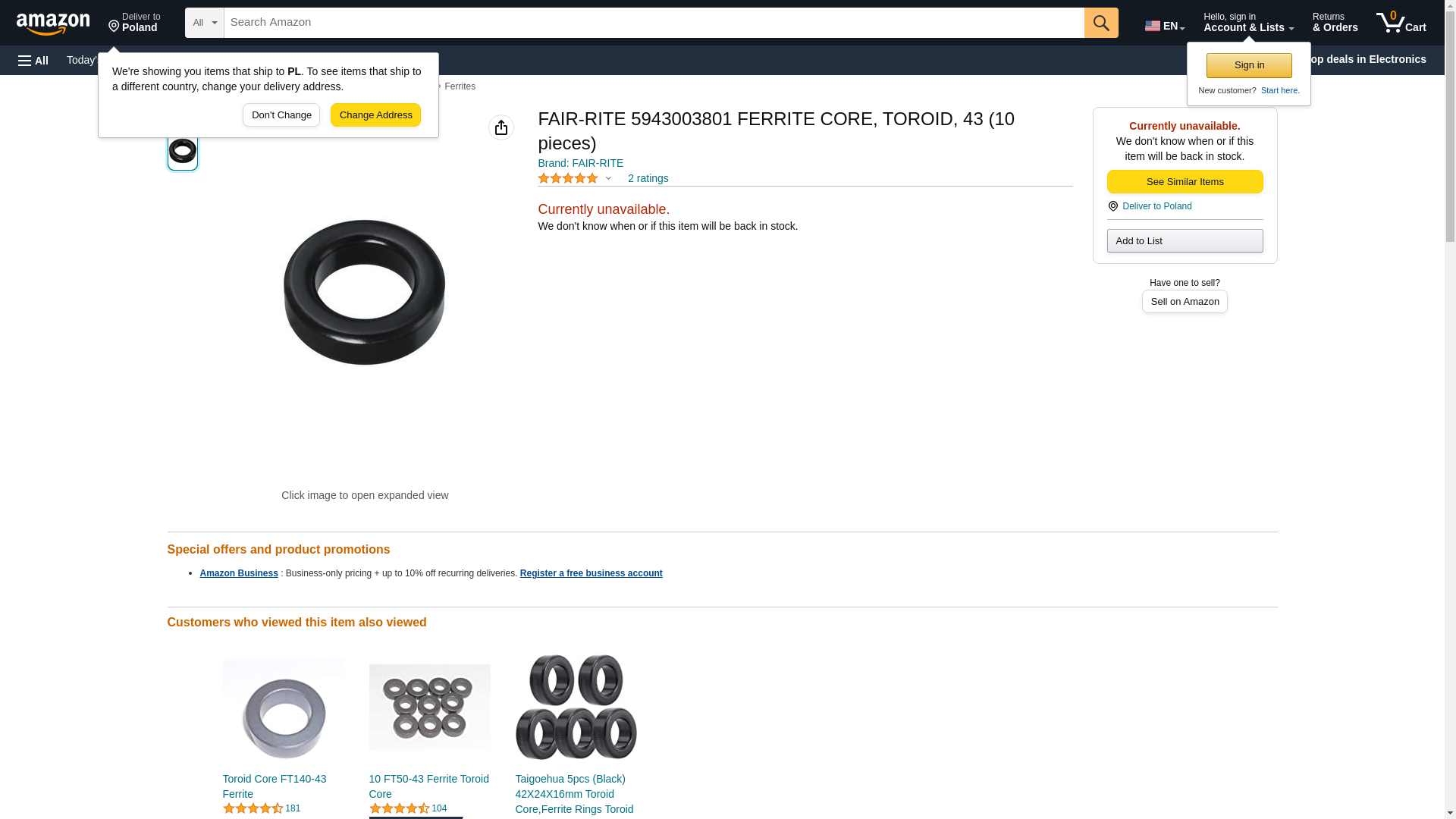 FAIR-RITE 5943003801 FERRITE CORE, TOROID, 43 (5 pieces)