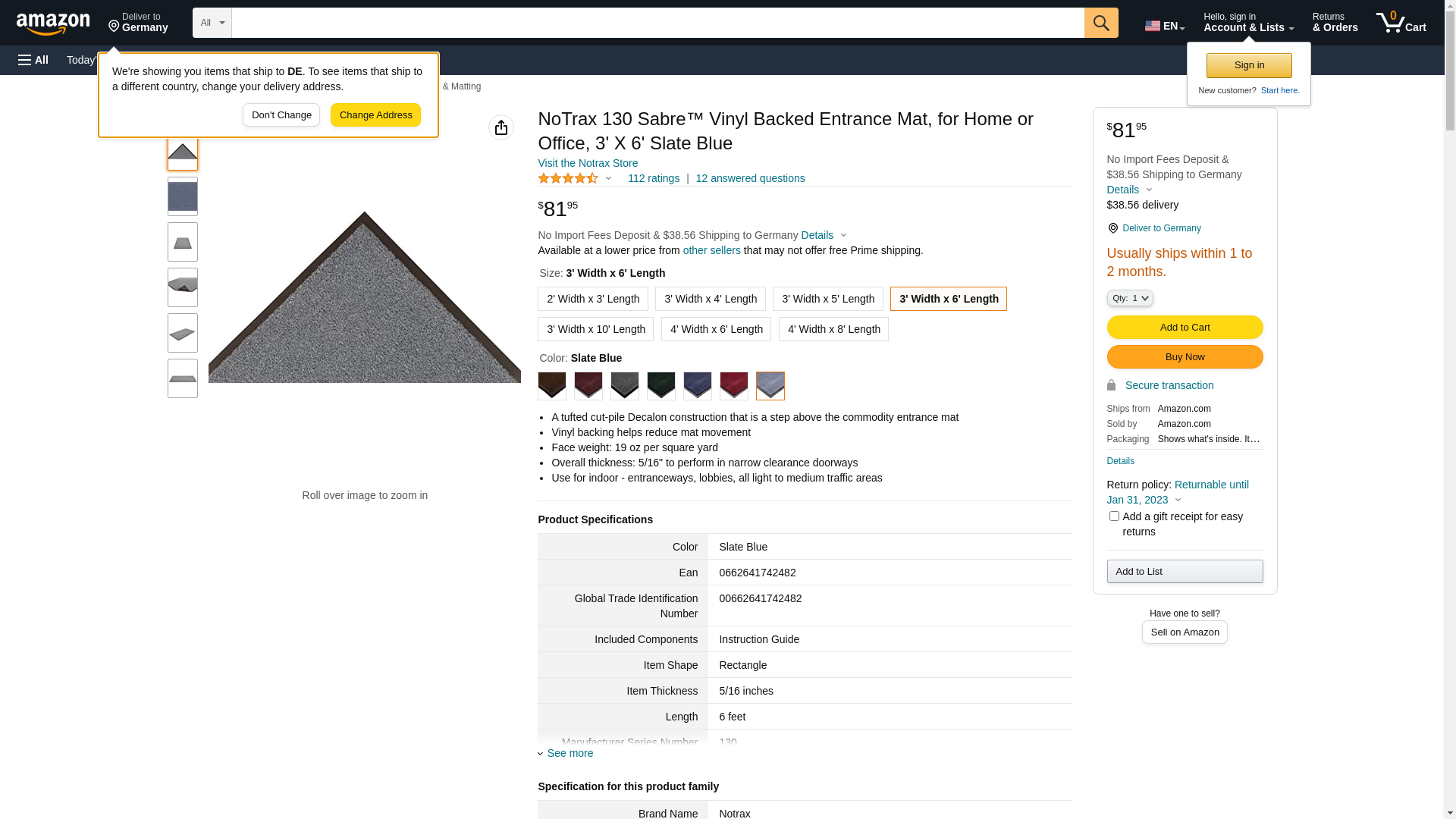NoTrax 130 Sabre™ Vinyl Backed Entrance Mat, for Home or Office, 3' X 6' Slate Blue