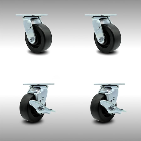 Stainless Steel Polyolefin Swivel Caster w/Main. Free Bearings Set of 4 w/5" x 2" Black Wheels - Includes 2 Swivel with Brakes & 2 Swivel - 2600 lbs Total Capacity - Service Caster Brand