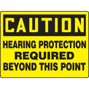 Accuform MPPE781VA Aluminum Safety BIGSign, Legend "Caution Hearing Protection Required Beyond This Point", 18" Length x 24" Width, Black on Yellow
