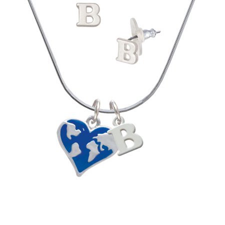Silver Tone Enamel Earth Heart - B Initial Charm Necklace and Stud Earrings Jewelry Set. Silver Tone, hand enameled charms. Charm size is approx. 0.73 x 0.74 x 0.11 inches (HxWxD) including loop. Mini Initial Stud Earrings are approx. 0.28 x 0.34 inches (HxW) with steel posts. Earring backs are Bullet ''Clutch'' Style with Plastic Pad. Small Initial Pendant is approximately 0.45 inches tall including loop. 18 Inch Snake Chain Necklace with a Lobster Claw Clasp. Charming jewelry set makes a wonderful personalized gift. Featured necklace is an exclusive Delight & Co. design. We are a family owned company for over 35 years in the U.S.A. PLEASE NOTE: Our products are lead safe, but are not intended for children 14 years and younger.