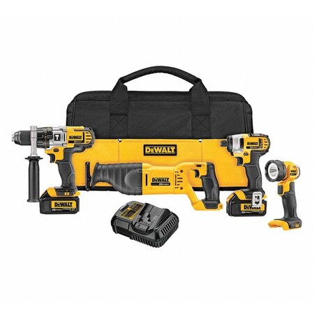 DEWALT, 20V DC Volt, 4 Tools, Cordless Combination Kit - 7CW74|DCK490L2/DCB200 - Grainger