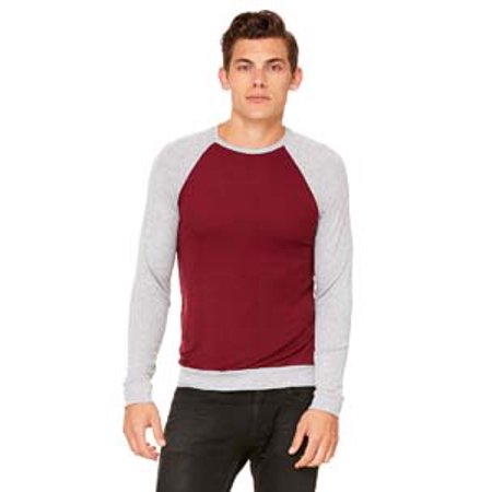 5.3 oz., 65% polyester, 35% viscose; Athletic Heather is 52% polyester, 48% viscose; retail fit; unisex sizing; 1x1 smooth ribbed fabric uwith a flat surface ideal for printing; raglan sleeves; sideseamed;