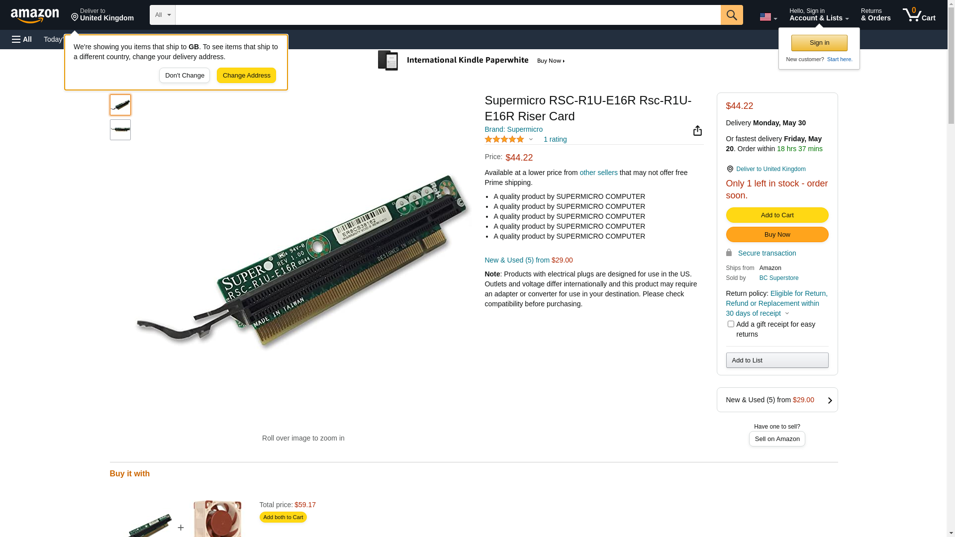 Supermicro RSC-R1U-E16R 1U SXB2 Slot (X7DXU) to PCI-Express x16 Riser Card