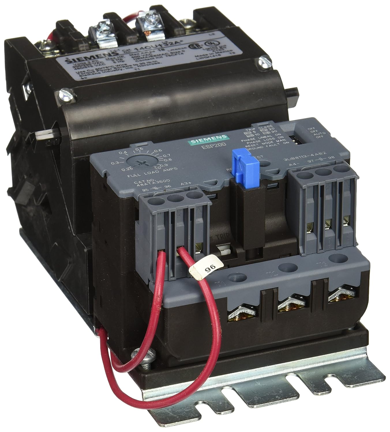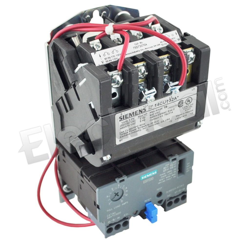 Siemens 14CUA32AG Heavy Duty Motor Starter, Solid State Overload, Auto/Manual Reset, Open Type, Standard Width Enclosure, 3 Phase, 3 Pole, 0 NEMA Size, 0.25-1A Amp Range, A Frame Size, 220-240 at 60Hz Coil Voltage
