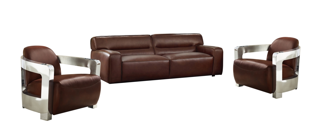 Sunset Trading SU-AX6816-S2A Milan Leather Living Room Sofa Set & Two Aviator Chairs with Chrome Arms Brown - 3 Pie