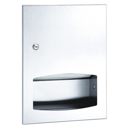 Bradley Towel Dispenser. Heavy gauge stainless steel cabinet with exposed surfaces in architectural satin finish. Welded construction with seamless corners and burr-free edges. 22 gauge stainless steel door. Concealed, full-length stainless steel piano hinge. Door has one tumbler lock. Semi-Recess Mounted. Dispenses 400 Multi-Fold Paper Towels. Dispenses 300 C-Fold Paper Towels.