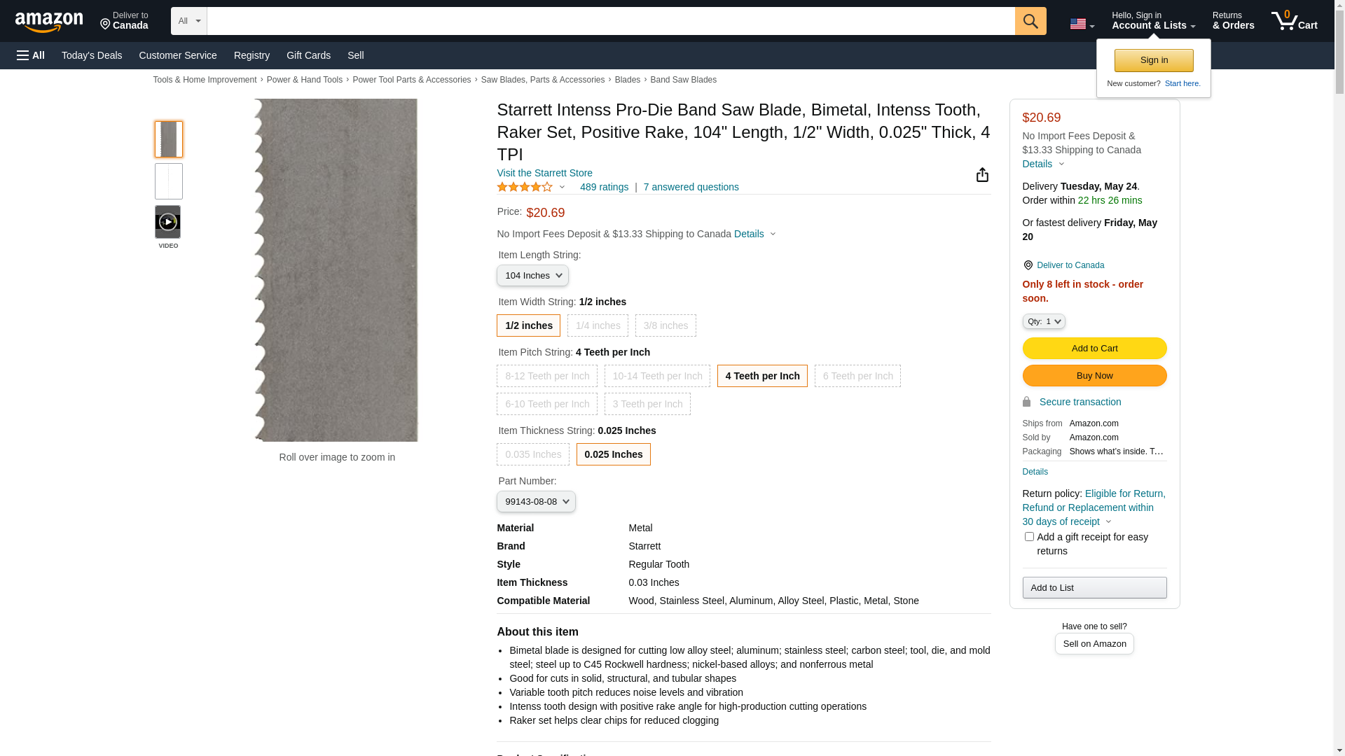 Starrett Intenss Pro-Die Band Saw Blade, Bimetal, Intenss Tooth, Raker Set, Positive Rake, 104" Length, 1/2" Width, 0.025" Thick, 4 TPI