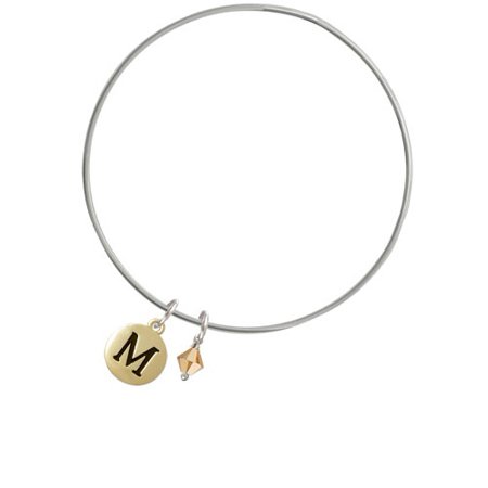 Capital Gold Tone Letter - M - Pebble Disc - Golden Bicone Bangle Bracelet. Gold Tone Charm. Charm size is approx. 0.59 x 0.50 x 0.09 inches (HxWxD) including loop. 1.8 mm Bangle Bracelet inside circumference is approx: 2.50 Inches. Hand wrapped crystal bicone is approx: 6mm. This Bangle looks wonderful alone or layered with other Bangles to match your style. Available in many colors. We are a family owned company in the U.S.A. since 1977. PLEASE NOTE: Our products are lead safe, but are not intended for children 14 years and younger.