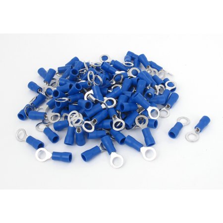 <li>Product Name : Ring Terminal;Type : #10;Model : RVS1.25-5</li> <li>Fit for Cable : A.W.G.22-16;Material : PVC, Metal;Color : Blue, Silver Tone</li> <li>Ring Diameter : 5.3 x 8.0mm/ 0.2" x 0.3"(Inner*Out);Sleeve Part Height : 10mm/ 0.4";Tube Inner Diameter : 4.3mm/ 0.15"</li> <li>Total Length : 21.5mm/ 1";Max. Current : 19A</li> <li>Weight : 52g;Package Content : 120(+/-2%) Pcs x Ring Terminal</li>
