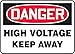 - Danger High Voltage - Keep Away safety sign printed in OSHA-compliant colors