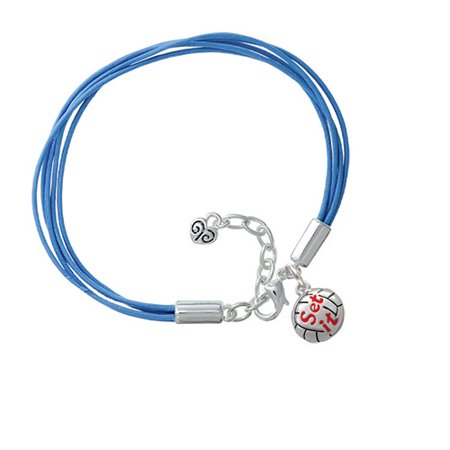 Silver Tone Volleyball - "Set It" Capri Blue Leather Aruba Bracelet . Silver Tone, hand enameled charms. Charm size is approx. 0.67 x 0.55 x 0.16 inches (HxWxD) including loop. 5 strands of 1.5 mm Leather Cord made in the U.S.A. Length: 7 1/4" - 8 1/2" Adjustable. Lobster Claw Clasp. Our Aruba leather bracelets are available in a variety of colors including: Red, Lime Green, Teal, Capri Blue, Navy Blue, Purple, Golden, and Grey. PLEASE NOTE: Our products are lead safe, but are not intended for children 14 years and younger.