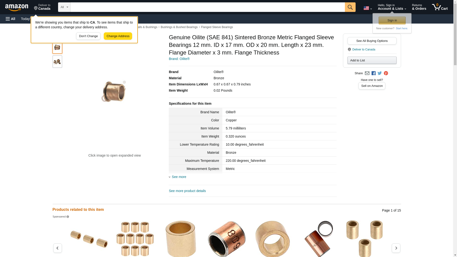 Genuine Oilite® (SAE 841) Sintered Bronze Metric Flanged Sleeve Bearings 12 mm. ID x 17 mm. OD x 20 mm. Length x 23 mm. Flange Diameter x 3 mm. Flange Thickness