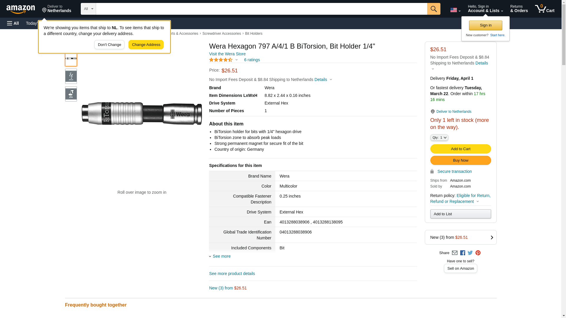 Wera Hexagon 797 A/4/1 B BiTorsion, Bit Holder 1/4"