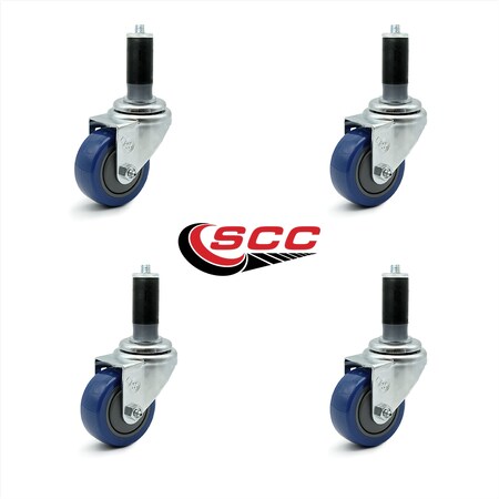 3 Inch Blue Polyurethane Wheel Swivel 1-1/4 Inch Expanding Stem Caster Set SCC