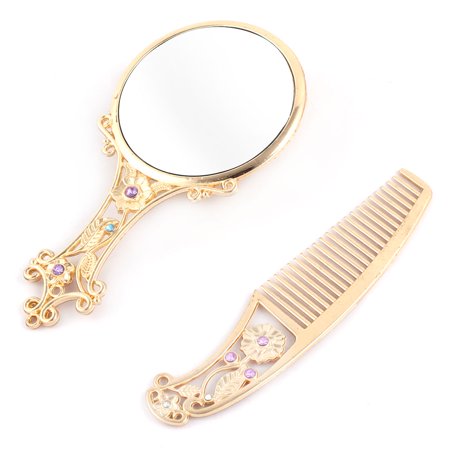 <ul> <li>Size: Comb Size:12 x 2.5 x 0.2cm/5" x 1" x 0.1" (L*W*T); Product Name: Mirror Comb Set; Pearl Type: NA</li> <li>Material Type: NA; Gem Type: NA; Metal Type: base</li> <li>Package Content: 1 x Handheld Mirror,1 x Hair Comb; Type: Handheld Mirror</li> <li>Weight: 124g; Material: Metal,Glass</li> </ul>