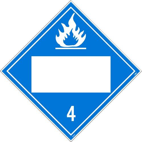 DL64BUV100, DOT Placard Sign, Dangerous When Wet 4, Blank , 10 X 10 , PVC, Flexible PVC, .015 Unrippable Vinyl, Pack 100 Flammable solids can undergo combustion when ignited. Prevent a serious accident by clearly marking flammable solids with our placard sign, which is in compliance with DOT-HM 181 requirements.