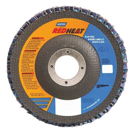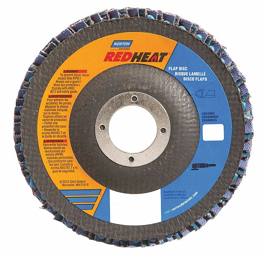 Norton RedHeat Abrasive Flap Disc, Type 29, Round Hole, Fiberglass Backing, Ceramic/Zirconia Alumina, 4-1/2" Dia., 80 Grit (Pack of 1)