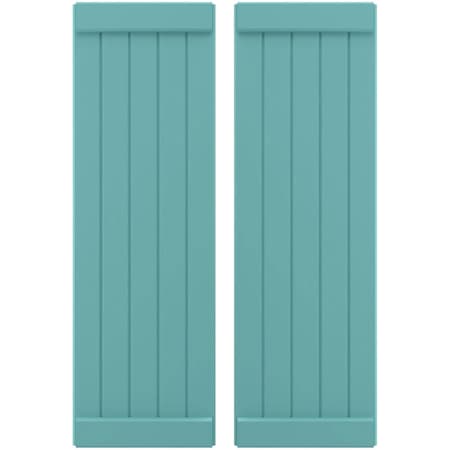 Ekena Millwork ARW103BB518X63PTH Americraft Five Exterior Real Wood Joined Board-n Shutters w/End Batten (Per Pair), 17 1/2"W x 63"H, Pure Turquoise