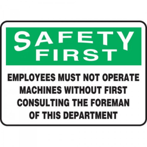 EMPLOYEES MUST NOT OPERATE MACHINES WITHOUT FIRST CONSULTING THE FOREMAN OF THIS DEPARTMENT