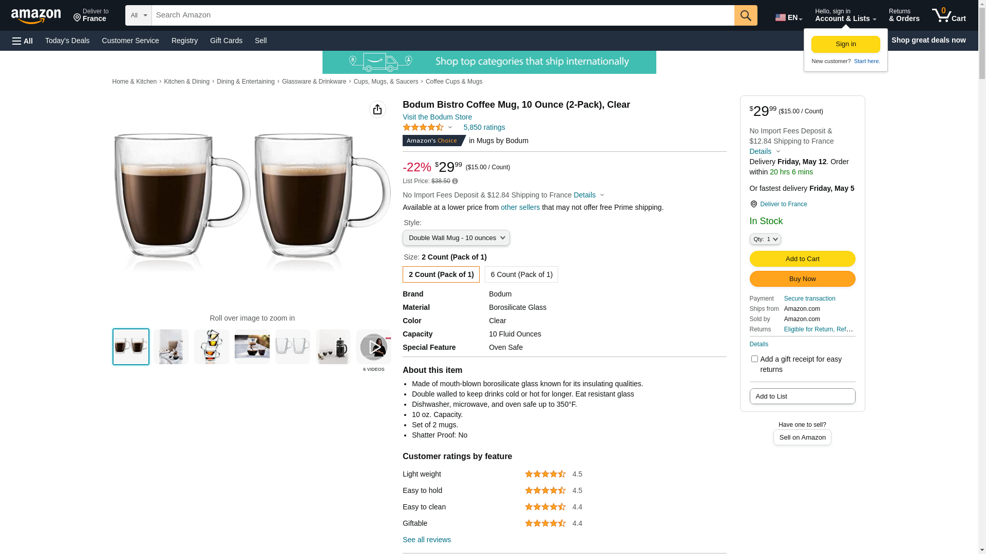 | Feature | Insulated mug: a set of two double-wall Bistro mugs, 10 ounces each; perfect as a Coffee mug, Espresso mug, or a multitude of other hot and cold beverages |