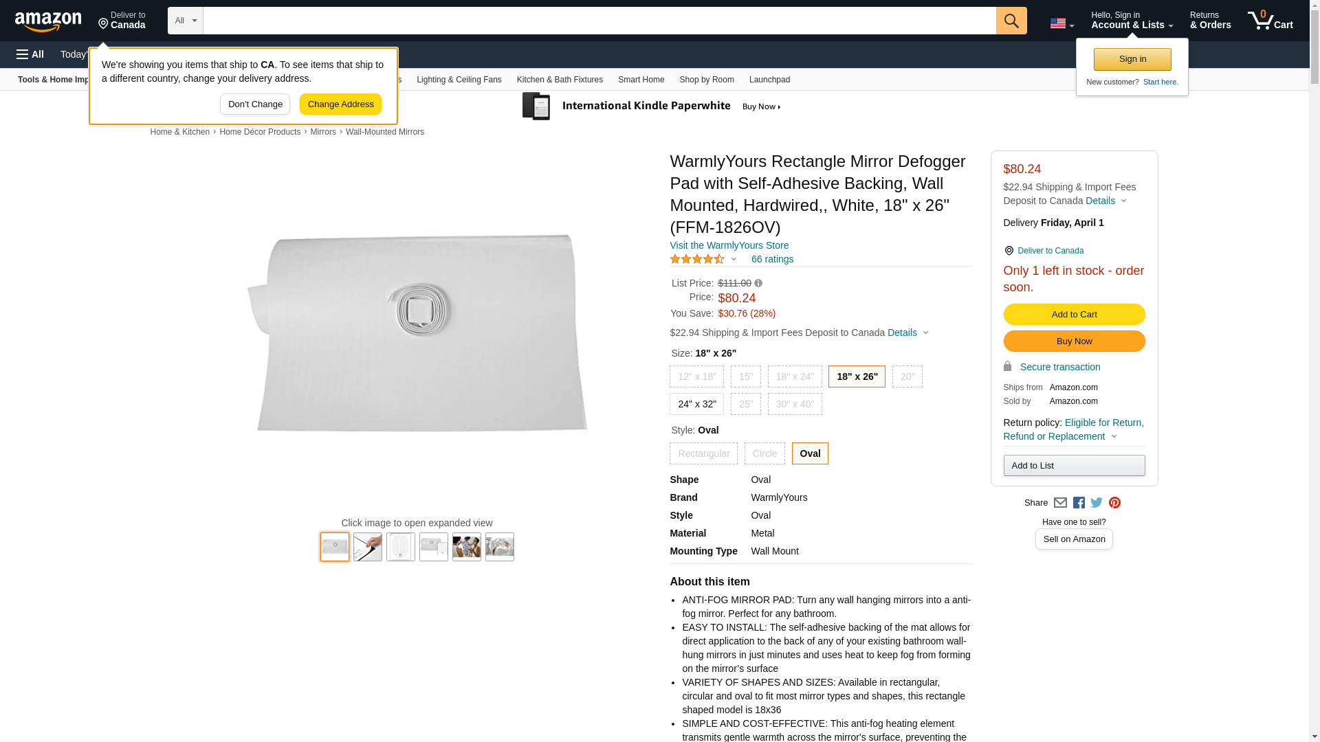 WarmlyYours Oval Mirror Defogger Pad with Self-Adhesive Backing, 18" x 26"