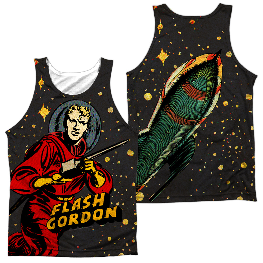 Trevco KSF178FB-TKPP-2 Flash Gordon & Blast Off Front & Back Print Adult Polyster Tank Top, White - Medium