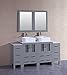 Bosconi AGR224CBECM2S 72" Double Vanity Set with Square Vessel Sinks, Countertops, Mirrors, and 2 Side Cabinets, Gray/Carrara Marble