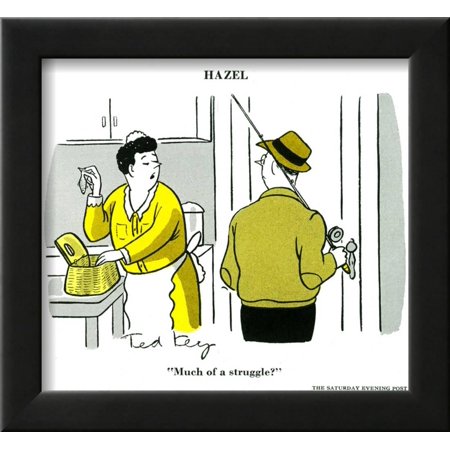 <ul> <li>Title: Hazel Cartoon</li> <li>Artist: Ted Key</li> <li>Product Type: Framed Art Print</li> <li>Framed in SOHO Black</li> <li>Arrives ready-to-hang for fast, simple installation</li> <li>Framed Size: 13x12 in.</li> <li>Handcrafted in the USA</li> </ul>