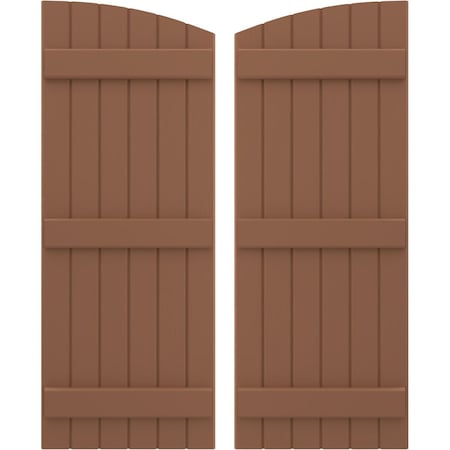 Ekena Millwork ARW401BE621X55BTH Americraft Six 3 Exterior Real Wood Joined Board-n-Batten Shutters w/Elliptical Top (Per Pair), 21"W x 55"H, Burnt Toffee