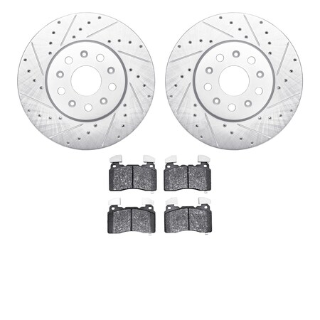 Dynamic Friction Company Front Brake Rotors Drilled and Slotted Silver with 5000 Advanced Brake Pads - 7502-46038
