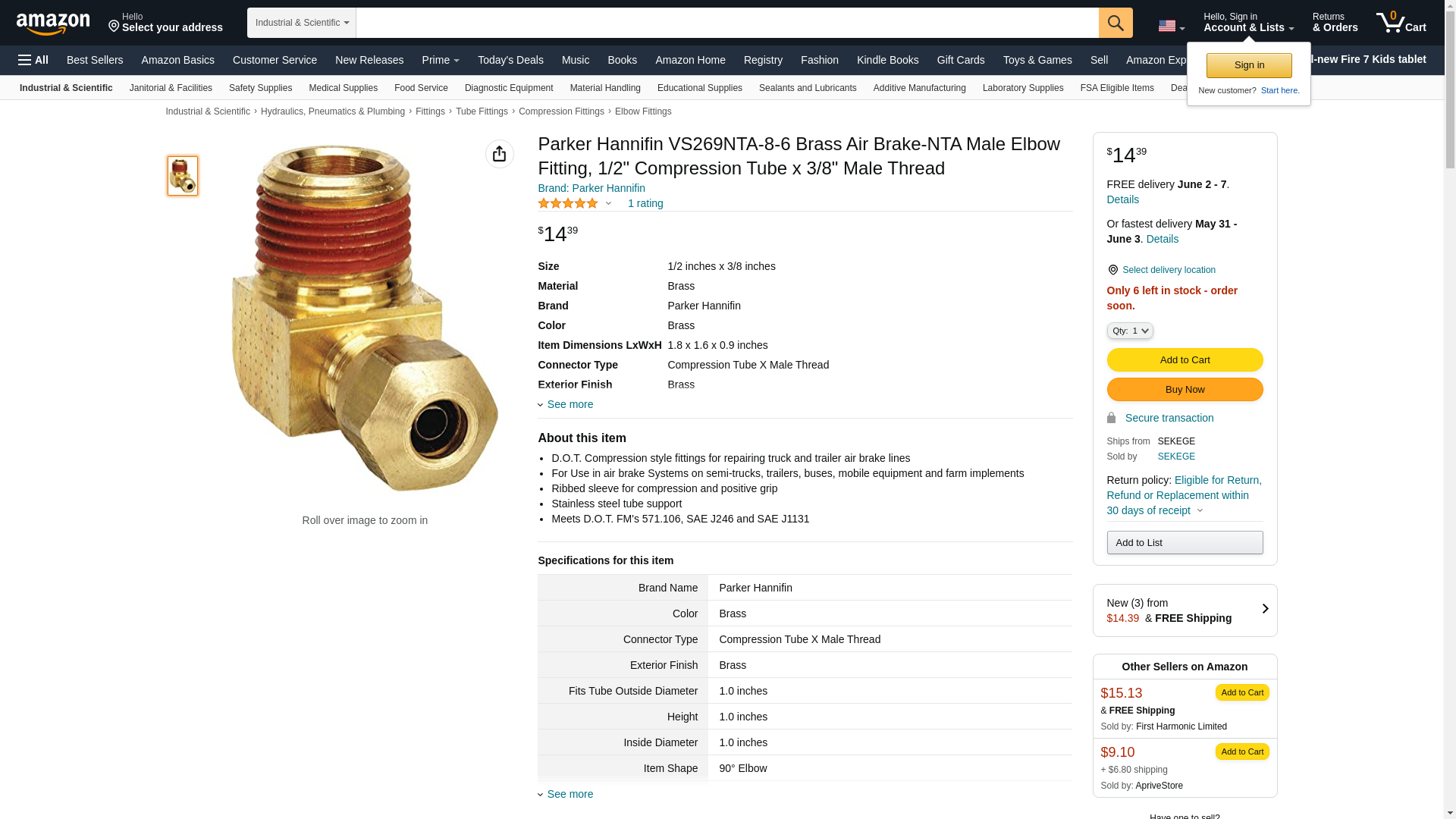 | Airline Hydraulics | PARKER VS269NTA-8-6 | 1 | 1 | 1 @ $15.07 | |