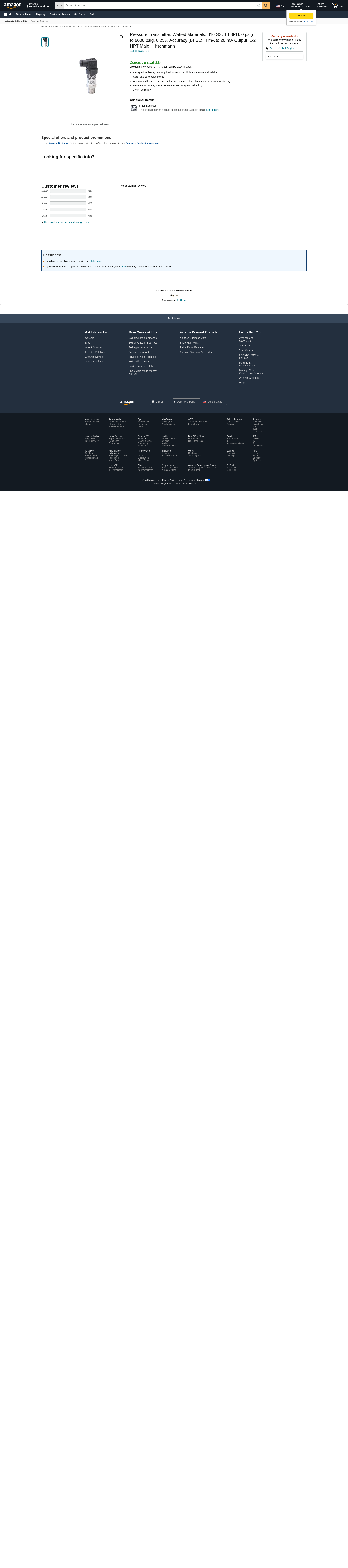 Noshok Pressure Transducer - 615-6000-1-1-8-8