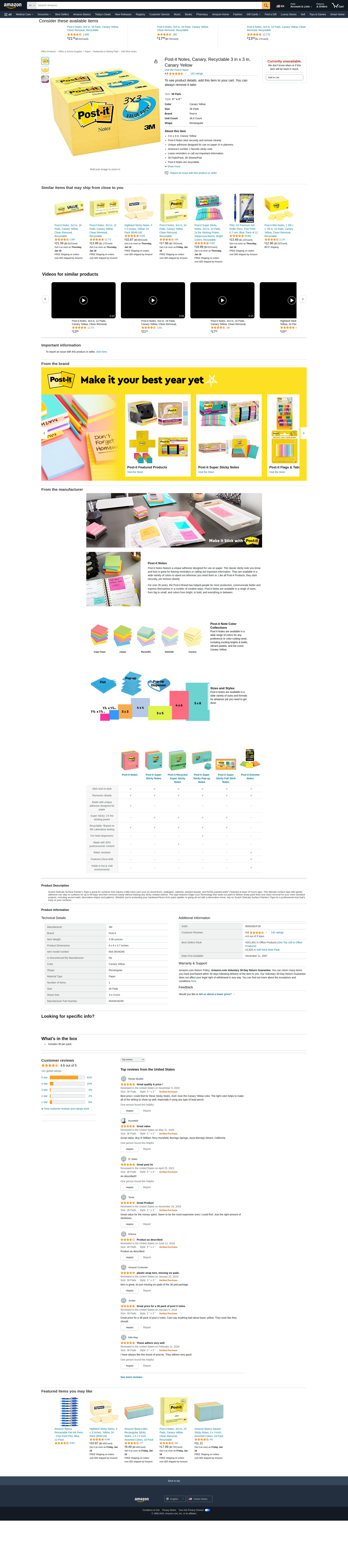 Post-it Notes, Canary, Recyclable 3 in x 3 in, Canary Yellow