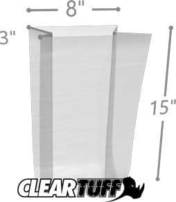 - 8 x 3 x 15 001 gusset poly bags feature impressive clarity and make storage and organization simple for industrial, food service and healthcare applications