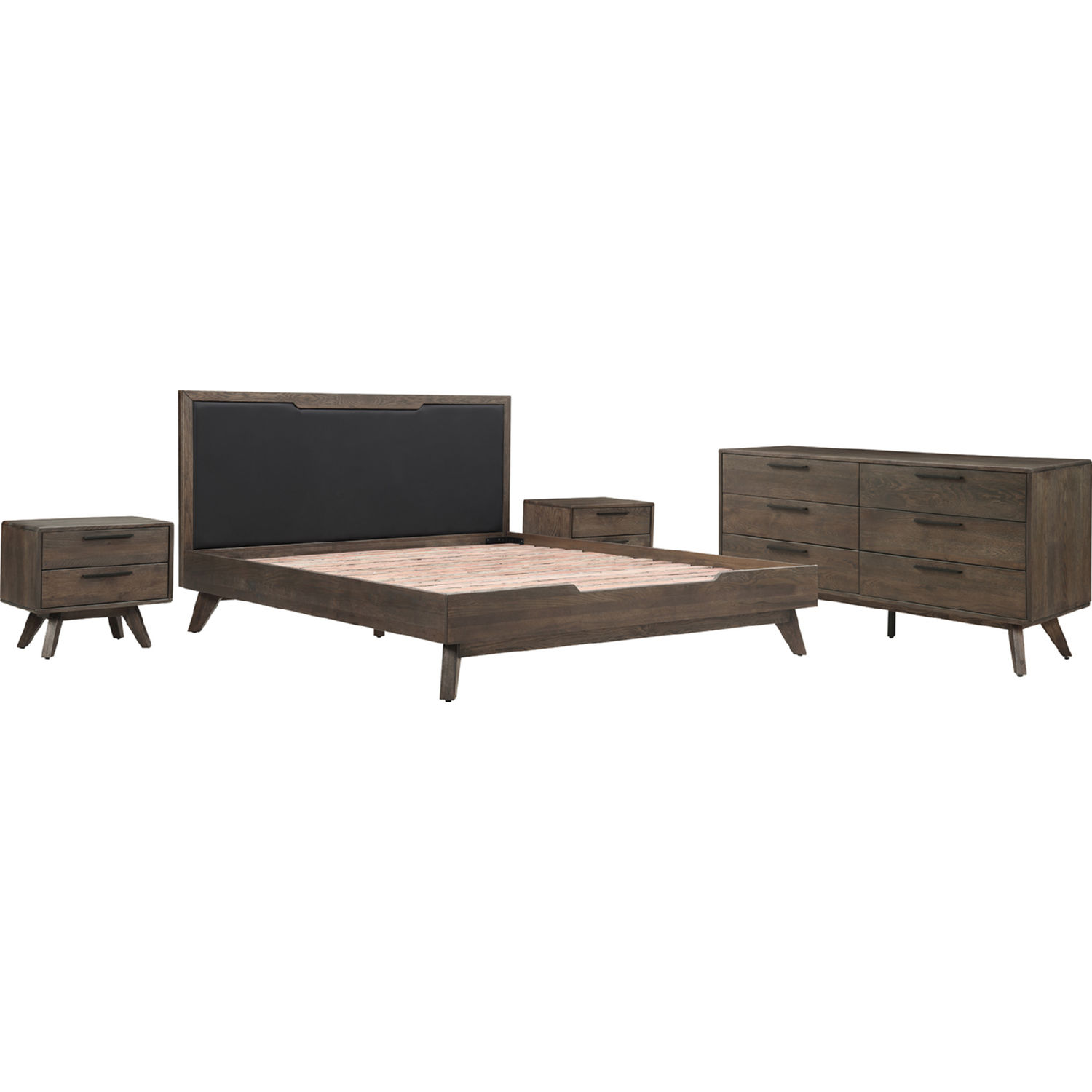Astoria 4 Piece King Bedroom Set in Oak with Black Faux Leather - Armen Living SETAHBDKG4A