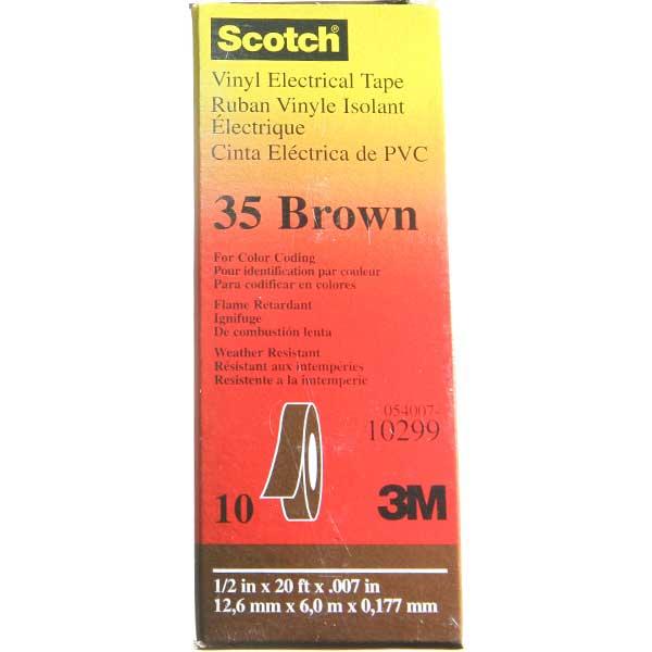 3M 35-BROWN-1/2 Tape; Color Coding; Electrical; Vinyl; Brown; 20 ft.; 0.50 in. (10 pieces)