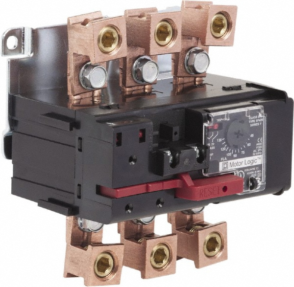 Motor Logic Overload Relays 3-phase, 60/50 Hz, 600VAC 3:1 current adjustment range Class 10/20 selectable thermal protectionHeaterless construction with adjustable full-load amps. Relays are protected against phase loss and phase imbalance. Mount separately or use to retrofit an existing Square D Type S starter. Select overload relay by full load amp current range.<br /><br /> Item - Relay: NEMA Style Overload Relay<br /> Use With - Contactors and Starters: Mfr. Class 8536 Starters<br /> NEMA Size: 4<br /> Overload Relay Current Range: 45 to 135A<br /> Trip Class - Overload: 10, 20<br /> Thermal Units Required: No<br /> Sensing Method: Electronic<br /> Reset Type - Relay: Manual<br /> Number of Poles: 3<br /> Body Height - Relay: 2.90"<br /> Body Width - Relay: 5.30"<br /> Body Depth - Relay: 4.50"<br /> Overall Height - Relay: 2.90"<br /> Features: Ground Fault Detection<br /> Voltage: 600VAC<br /> Separate Mounting: Yes<br /> Standards: UL, CSA, NOM, CE Marked<br />