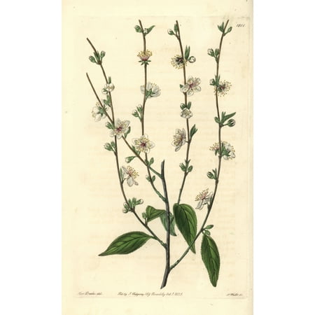 ?_ Florilegius / Mary Evans Stretched Canvas Art - Oriental Bush Cherry, Cerasus Japonica - Medium 18 x 24 inch Wall Art Decor Size.