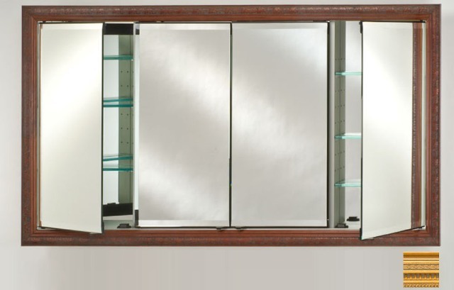 Afina Corporation FD6336RROMGD 63 in.x 36 in.Recessed Four Door Medicine Cabinet - Roman Gold