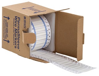 Double Sided PermaSleeve Polyolefin Wire Marking Sleeves, White, 0.187" Dia x 2" W, Roll of 500 Each. 3:1 heat shrinkable sleeve fit snugly around wires for maximum insulation protection and permanent identification. Fade-resistant and smudge-proof for superior aesthetic appearance. Cold resistant and flame-retardant with an operating temperature of -67°F to 275°F (-55°C to 135°C). Meets SAE-AMS-DTL-23053/5C (Class 1), SAE-AS-81531, MIL-STD-202; RoHS Compliant; and UL Recognized. For use with BBP72 Label Printer, Brady IP Series Label Printer, BradyPrinter i5100 Industrial Label Printer, BradyPrinter i7100 Industrial Label Printer, Brady THT 3" Core Printers