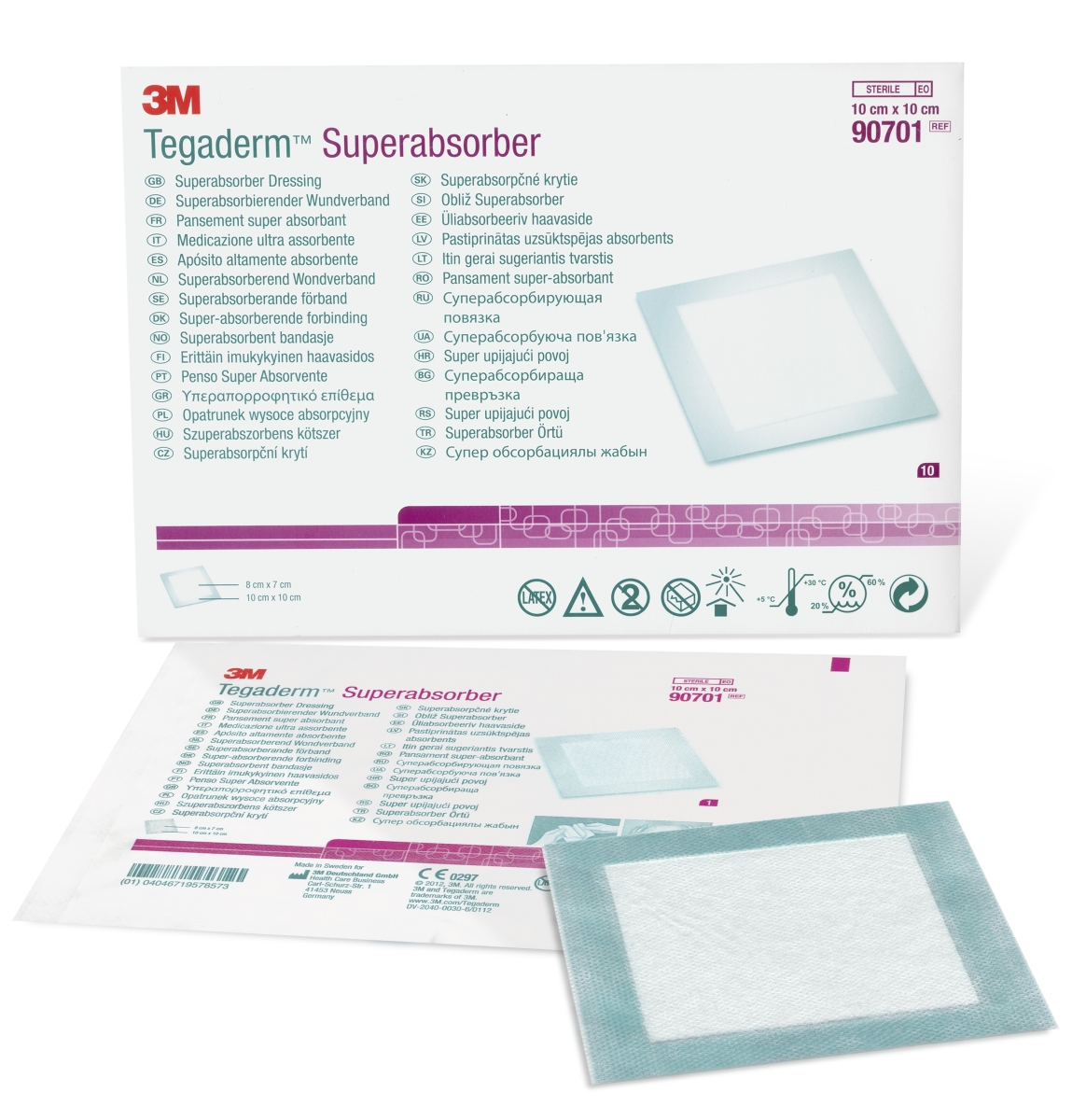 3M 97012110 White Tegaderm Superabsorber Dressing, 3.875 x 3.875 in. - Pack of 10