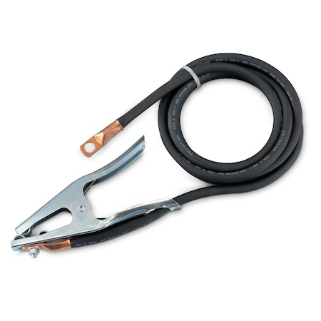 Premium Welding Cable 2/0 Red 5 FT Black Male 2MPC / 500A Steel Ground Clamp